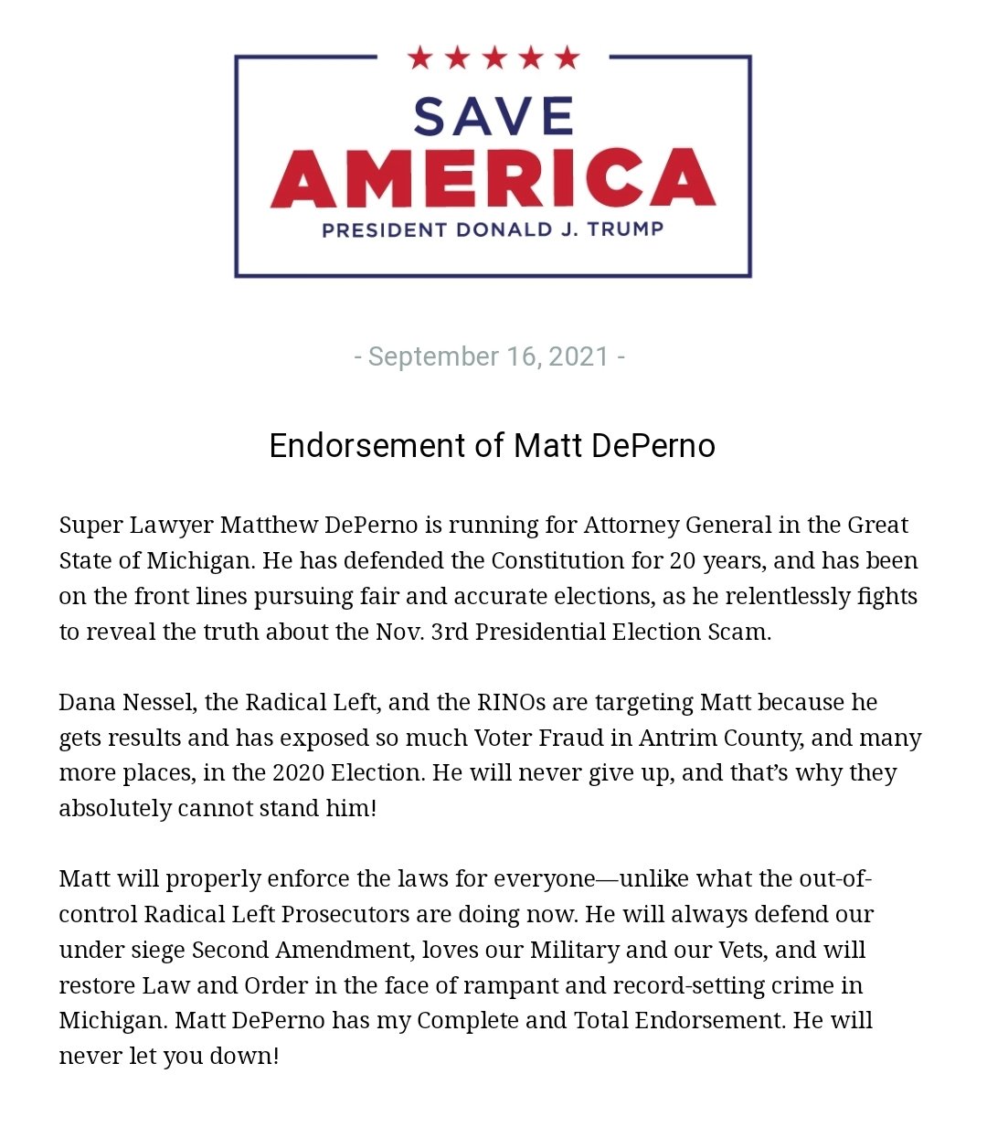 For months, Matthew has tried to take his findings to the Michigan Legislature, asking for their support in demanding a Statewide full forensic audit, to no avail. Michiganders deserve more from their elected officials, and as American Citizens, our constitutional right to ensure fair, free, and secure elections. Matthew has been attacked many times from elected officials, including Dana Nessel, but he has not backed down. Matthew is committed to conducting a full forensic audit in Michigan and as Michigan’s Attorney General he will hold those responsible for voter fraud accountable. He is committed to ending government lock downs and mask mandates. As Attorney General, Matthew will fight to protect the civil liberties of all Michigan residents, state's sovereign rights, and return us to our Founders' concept of a Constitutional Republic.